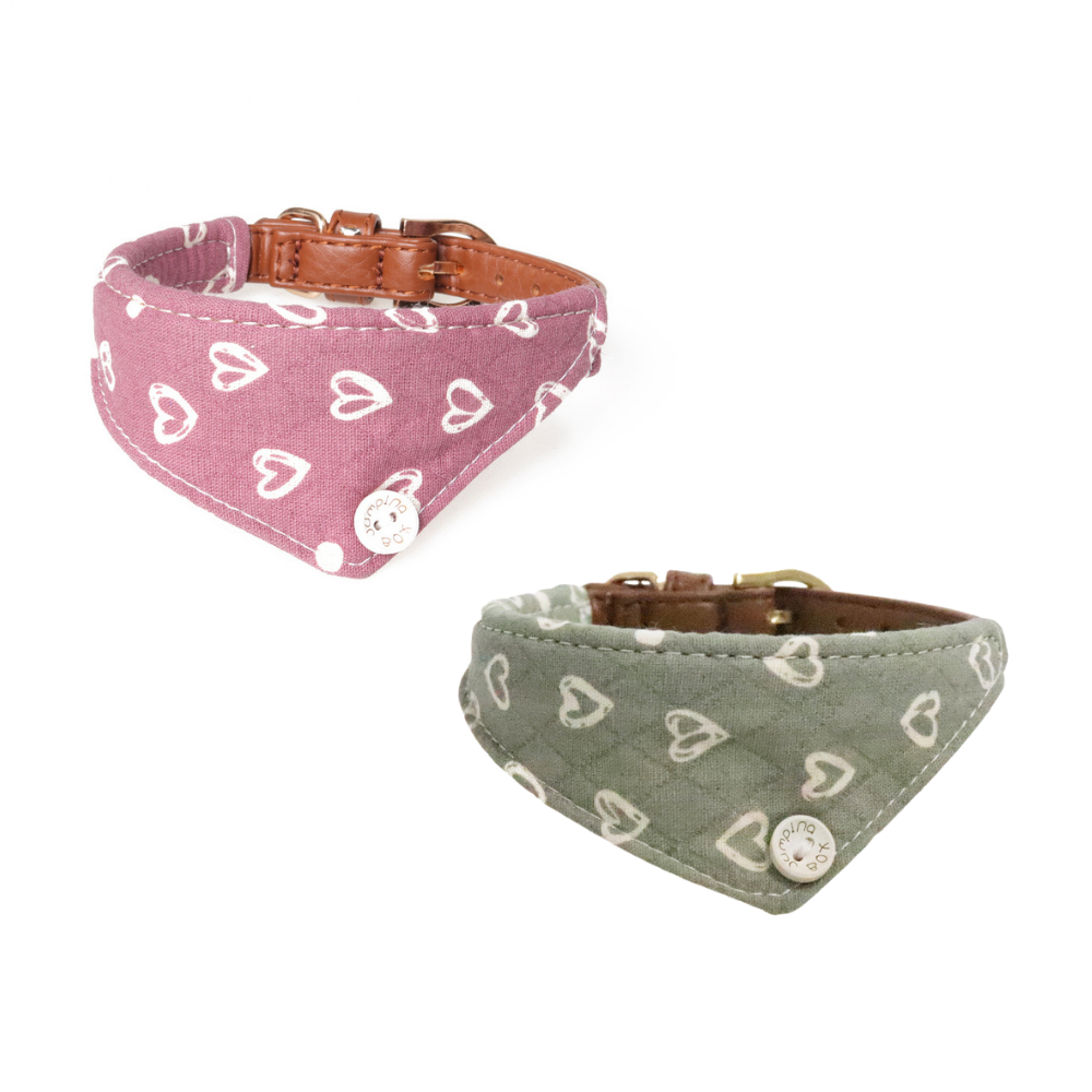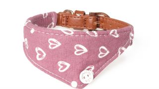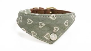 Piękna obroża materiałowa, podszyta brązową ekoskórą od środka, dzięki czemu nie brudzi się tak szybko.