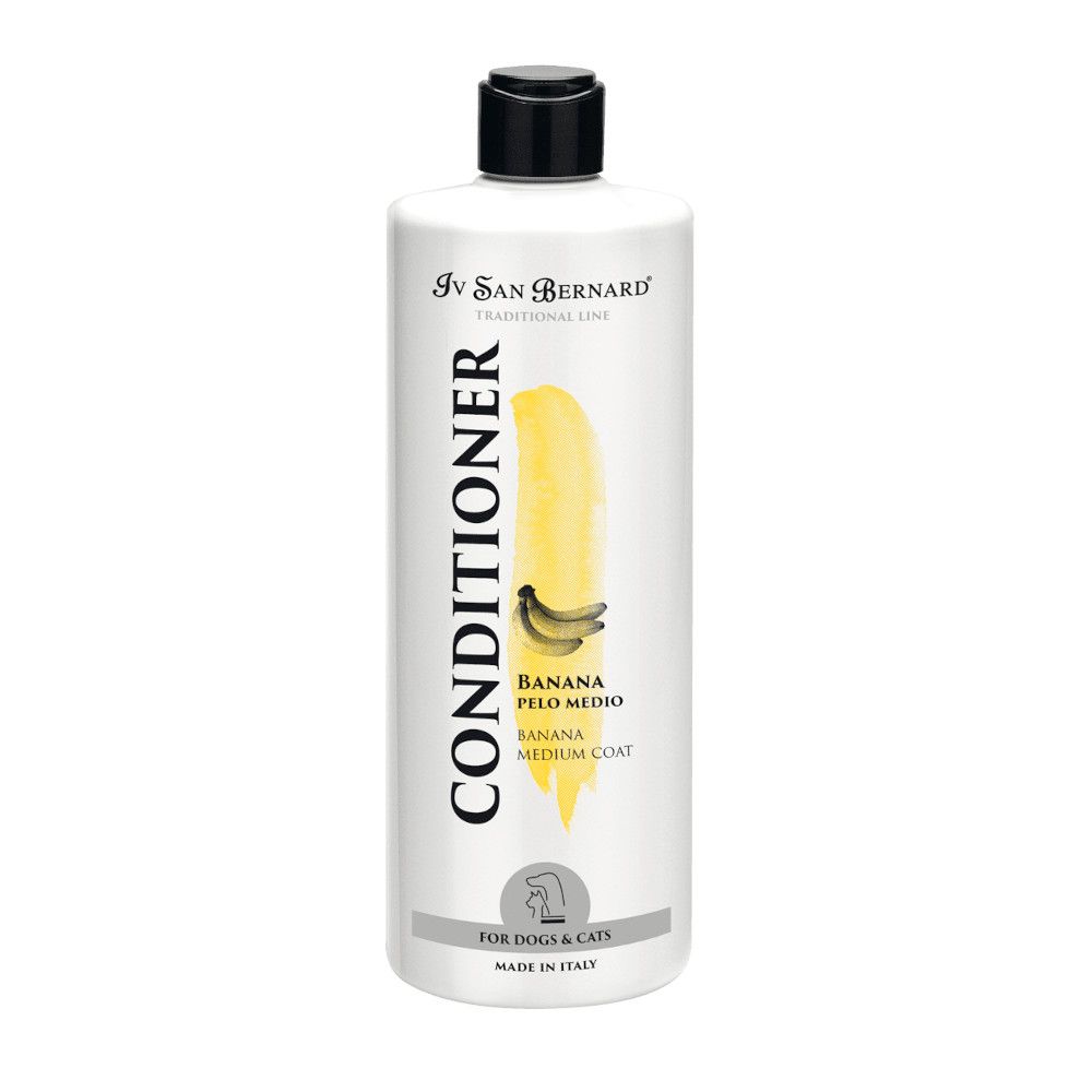 Odżywka bananowa Iv San Bernard jest przeznaczona szczególnie dla ras o średniej długości włosa i ras z podszerstkiem. Sierść nabiera blasku, elastyczności i staje się miękka w dotyku. Kołtuny są zauważalnie redukowane przy regularnym użytkowaniu. Odżywka pozostawia na włosach przyjemny, lekko owocowy zapach.
