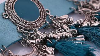 Ozdoba na szyję Boho w kolorze morskim.