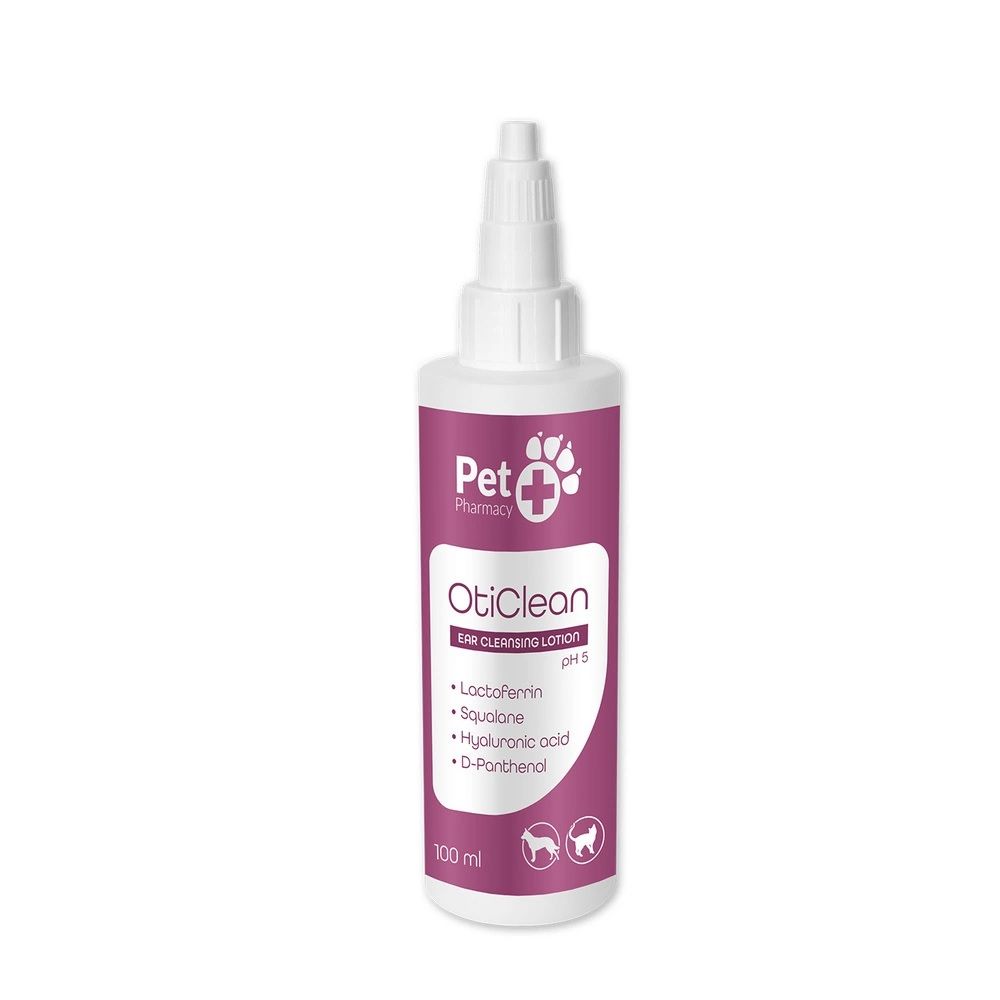 Pet+ Pharmacy OtiClean to specjalistyczna emulsja przeznaczona do pielęgnacji małżowin usznych i kanałów słuchowych zewnętrznych u psów i kotów. Znajduje również zastosowanie do higieny małżowin usznych i kanałów słuchowych zewnętrznych przy stanach zapalnych o różnej etiologii.