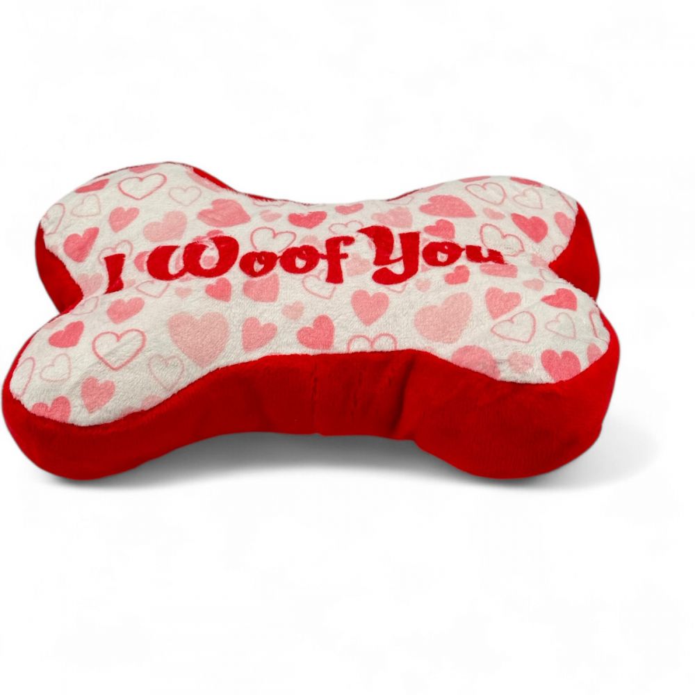 Pluszowa zabawka dla psa z napisem "I Woof You" to doskonały prezent dla Twojego czworonoga w dniu zakochanych. Ta słodka i miękka zabawka o wymiarach 18x10 cm została stworzona z myślą o zapewnieniu Twojemu psu długich godzin radości i zabawy.