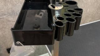 Obrotowy organizer/przybornik marki Vivog, przeznaczony do mocowania na wysięgniku stołu groomerskiego.