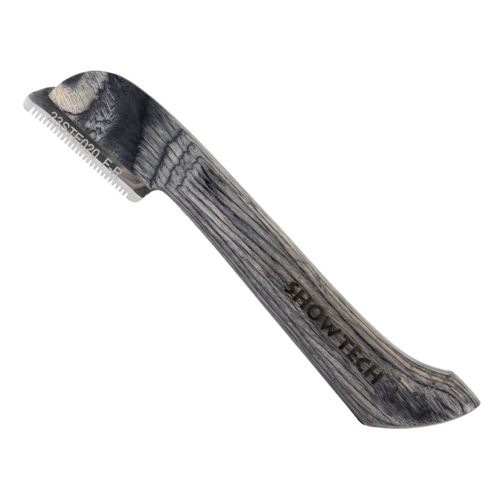 Trymer firmy Show Tech posiada drewnianą, profilowaną rączkę. Ostrze jest wykonane ze specjalnie hartowanej stali, które jest szlifowane i polerowane ręcznie.