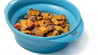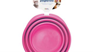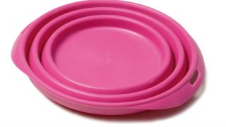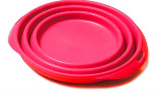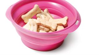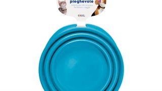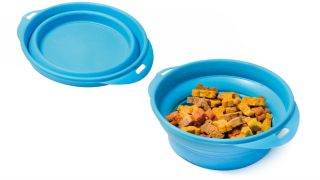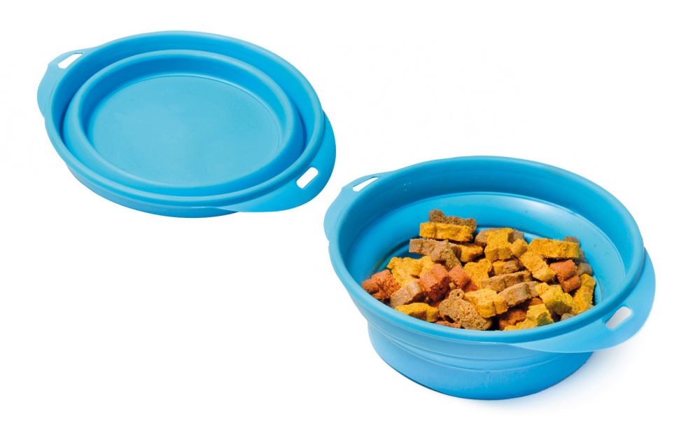Praktyczna składana miska wykonana z silikonu, idealna podczas podróży z psem.