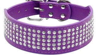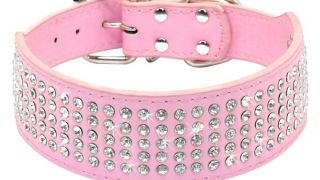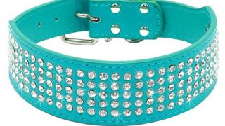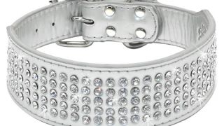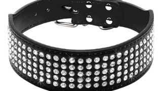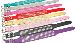 SKÓRZANA OBROŻA Z KRYSZTAŁKAMI XL