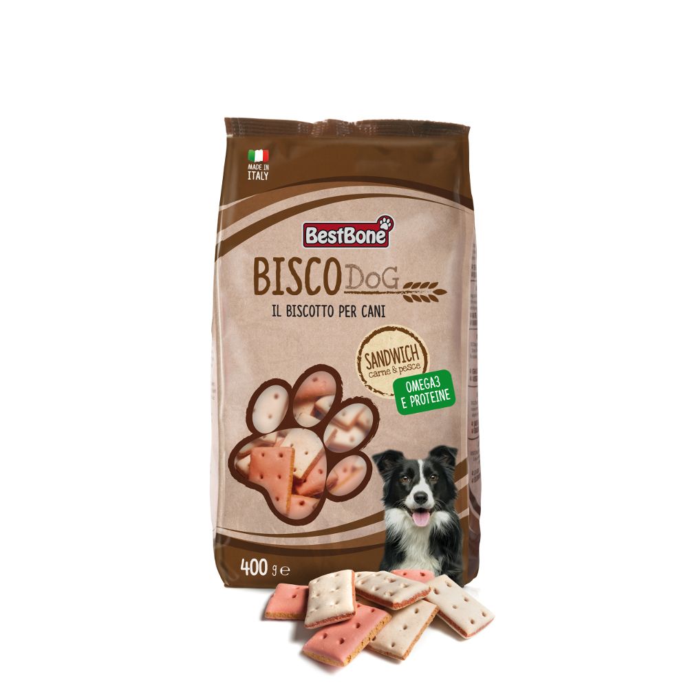 Smakołyki dla psa Sandwich to smaczna przekąska odpowiednia zarówno dla szczeniąt, jak i dorosłych psów. Płaskie, prostokątne ciasteczka z pysznym nadzieniem o smaku mięsa i ryb są bogate w białko, wapń oraz kwasy omega-3. Zawarte w nich zboża wspierają trawienie i wspomagają ogólną kondycję zwierzęcia, a żucie ciasteczek wzmacnia i oczyszcza jamę ustną psa.