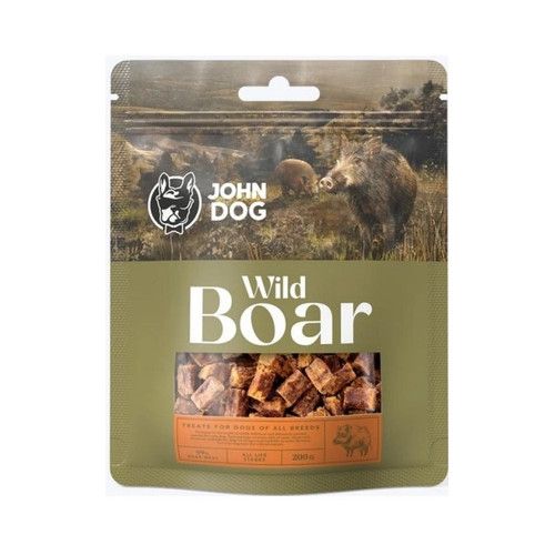 John Dog Wild Boar to przysmak dla psów wszystkich ras. Przekąska jest bezglutenowa. Charakteryzuje ją wysoka zawartość mięsa (60 % mięso z dzika, 39 % podroby i tusza z dzika). Wild Boar to przysmaki, których kształt idealnie sprawdzi się podczas profesjonalnego treningu lub domowej nauce nowych komend. Polecane również jako smaczki dla szczeniaków.