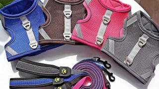 Przewiewny materiał, z którego uszyte są szelki, zapewnia komfort i przyjemność podczas długich spacerów.