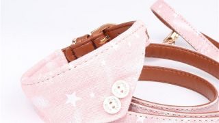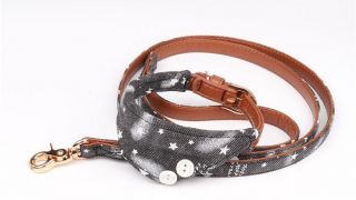 Do smyczki można dopasować sobie obrożę z muchą, bądź z bandamką.