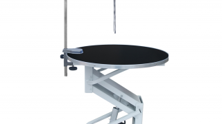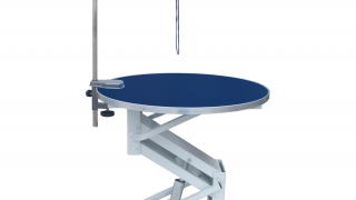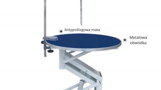 Okrągły stół elektryczny model N-105 przeznaczony do pielęgnacji zwierząt, który charakteryzuje się średnicą blatu wynoszącą 78 cm.