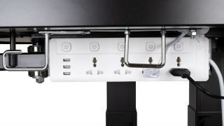- Kolejną unikalną cechą jest podstawa ramy. 2 specjalne silniki kolumnowe zapewniają dużo miejsca na nogi pod stołem, gdy siedzisz na stołku.