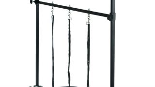 - W zestawie regulowany na wysokość wysięgnik/ szubienica z trzema smyczami.