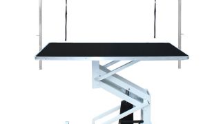 Dzięki precyzyjnie działającemu mechanizmowi hydraulicznemu, wysokość stołu można łatwo regulować, co zapewnia komfort pracy, minimalizując obciążenie kręgosłupa groomera.