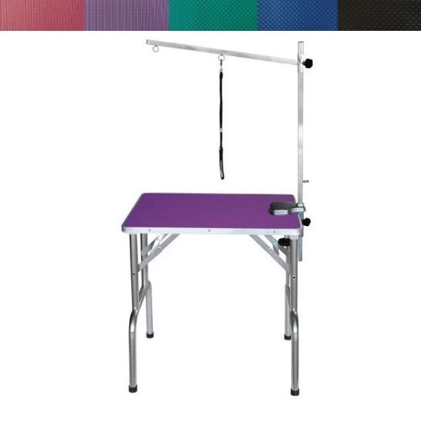 Stół groomerski N-304A jest idealny do trymowania, czesania i strzyżenia małych psów. Blat stołu pokryty jest antypoślizgową matą, którą łatwo utrzymać w czystości. Nogi stołu wykonane są ze stali nierdzewnej, zakończone podkładkami antypoślizgowymi.