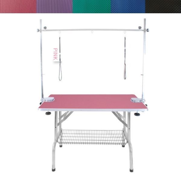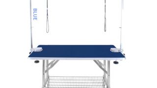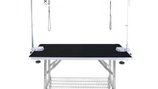 Stół z wysięgnikiem dwustronnym oraz z 2 smyczami groomerskimi w zestawie.