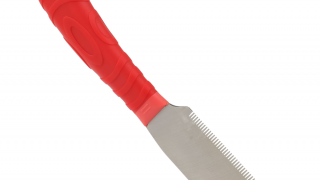 Ergonomiczna, zakrzywiona rękojeść zapewnia pewny chwyt i dobrą kontrolę, co ma duże znaczenie przy pracy na większych powierzchniach. Nóż polecany do zastosowań profesjonalnych oraz dla osób, które oczekują wysokiej skuteczności.