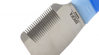 Stripping Knife Brofa Ultra Fine to bardzo delikatny nóż trymerski przeznaczony do precyzyjnej pracy przy sierści szorstkiej. Gęsto rozmieszczone, krótkie zęby pozwalają kontrolowanie usuwać martwy włos okrywowy bez „szarpania” i bez niszczenia struktury sierści.