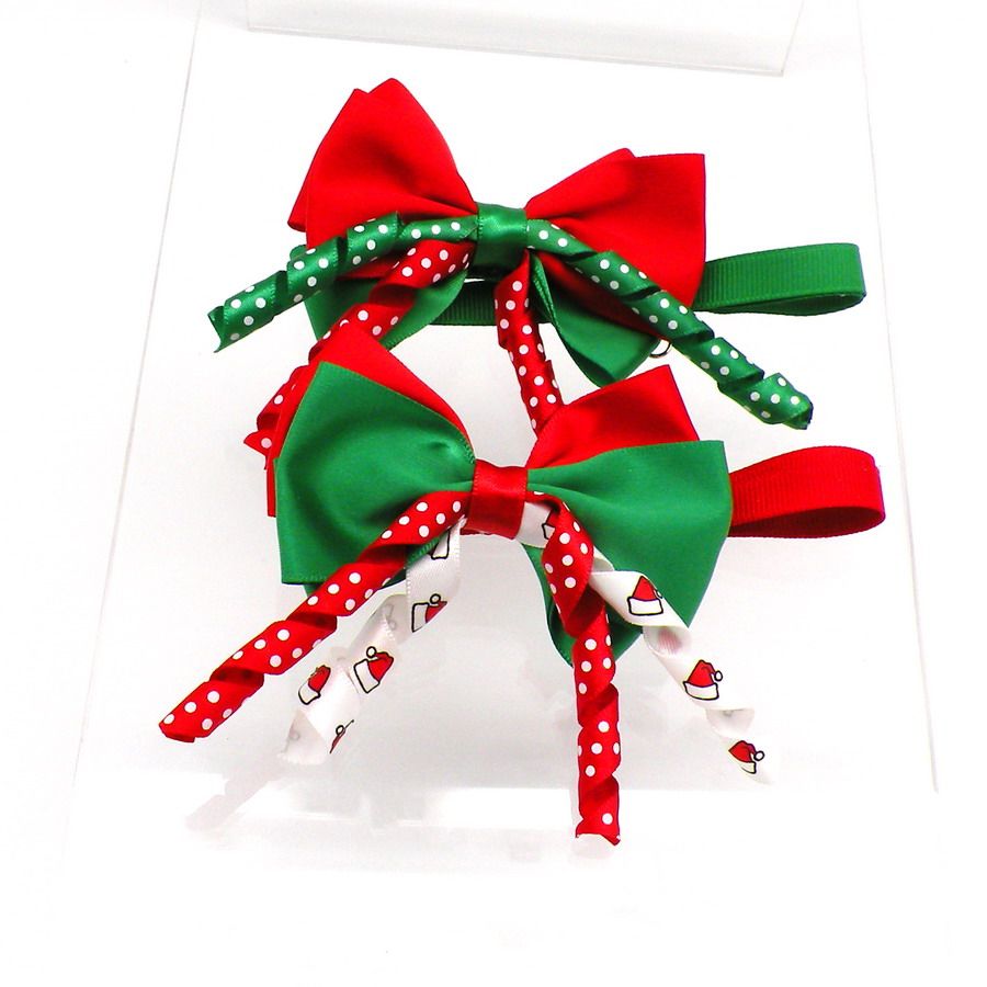 Świąteczne muszki, kokardki na tasiemce 2 szt.