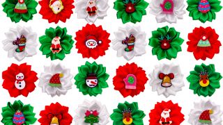 Dodaj swojemu pupilowi świątecznego blasku dzięki zestawowi czterech uroczych kokardek na sylikonowych gumkach! Każda kokardka jest starannie wykonana i ozdobiona świątecznymi elementami w kolorach białym, czerwonym oraz zielonym. Doskonałe do wykonania psiej kitki, idealne na Boże Narodzenie i inne zimowe okazje.
