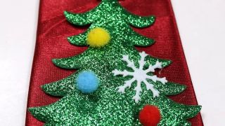 Świąteczny krawat na gumce z aplikacją dla większych psów.