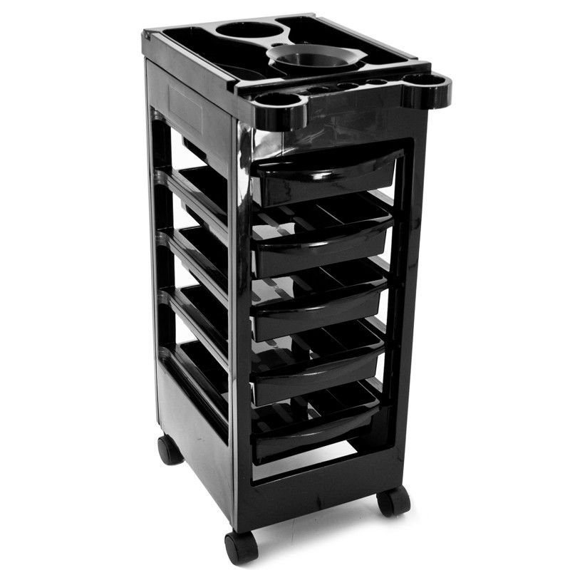 Pomocnik fryzjerski GABBIANO 048 dwustronny w kolorze czarnym ,posiada 5 kuwet i 10 schowków na asortyment fryzjerski. Stablina konstrukcja zapewni długotrwałe użytkowanie. Stolik osadzony na kółkach, dzięki którym narzędzia będą zawsze pod ręką.