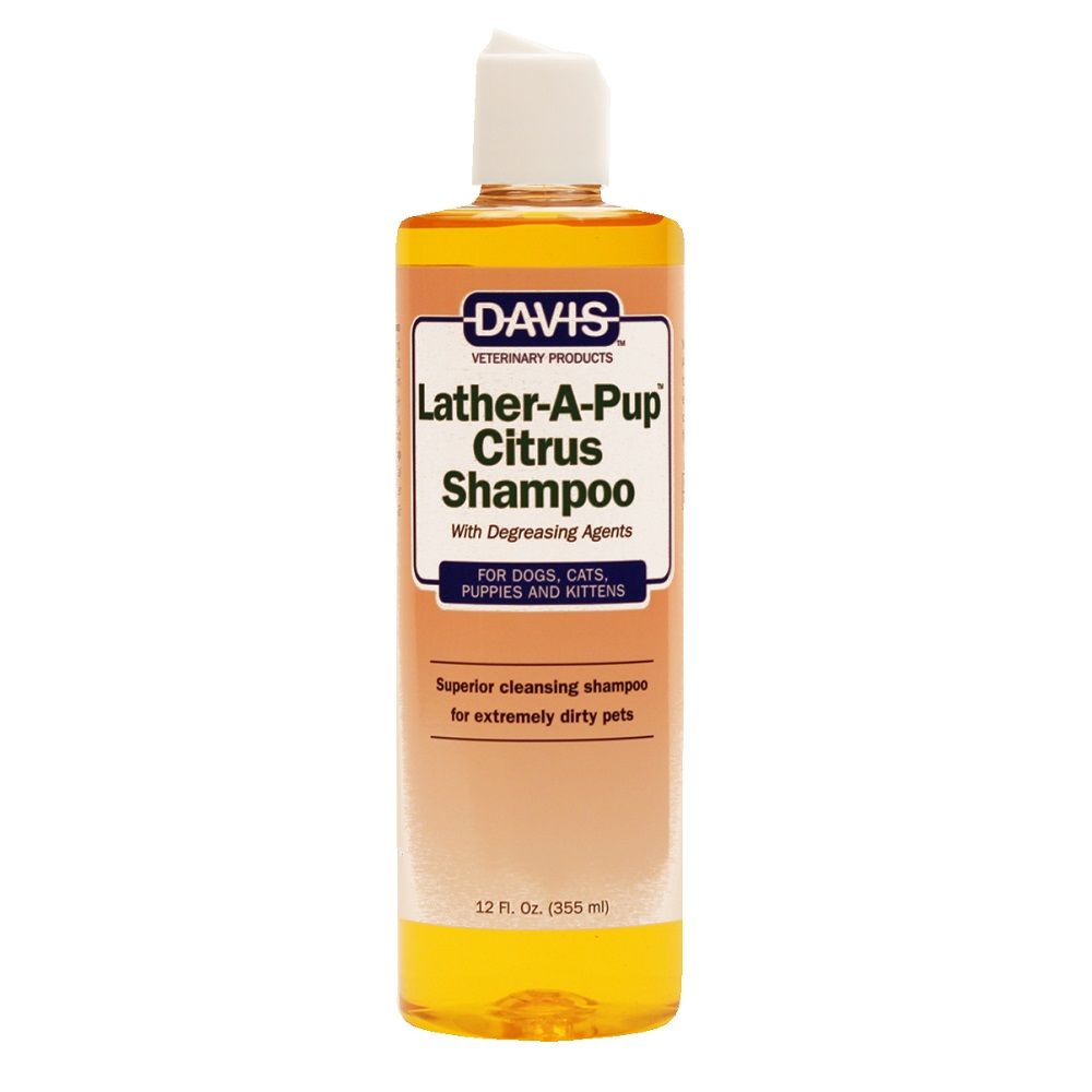 Szampon Davis Lather-A-Pup Citrus z substancjami odtłuszczającymi to idealne rozwiązanie do dogłębnego oczyszczania wyjątkowo zabrudzonych pupili.
