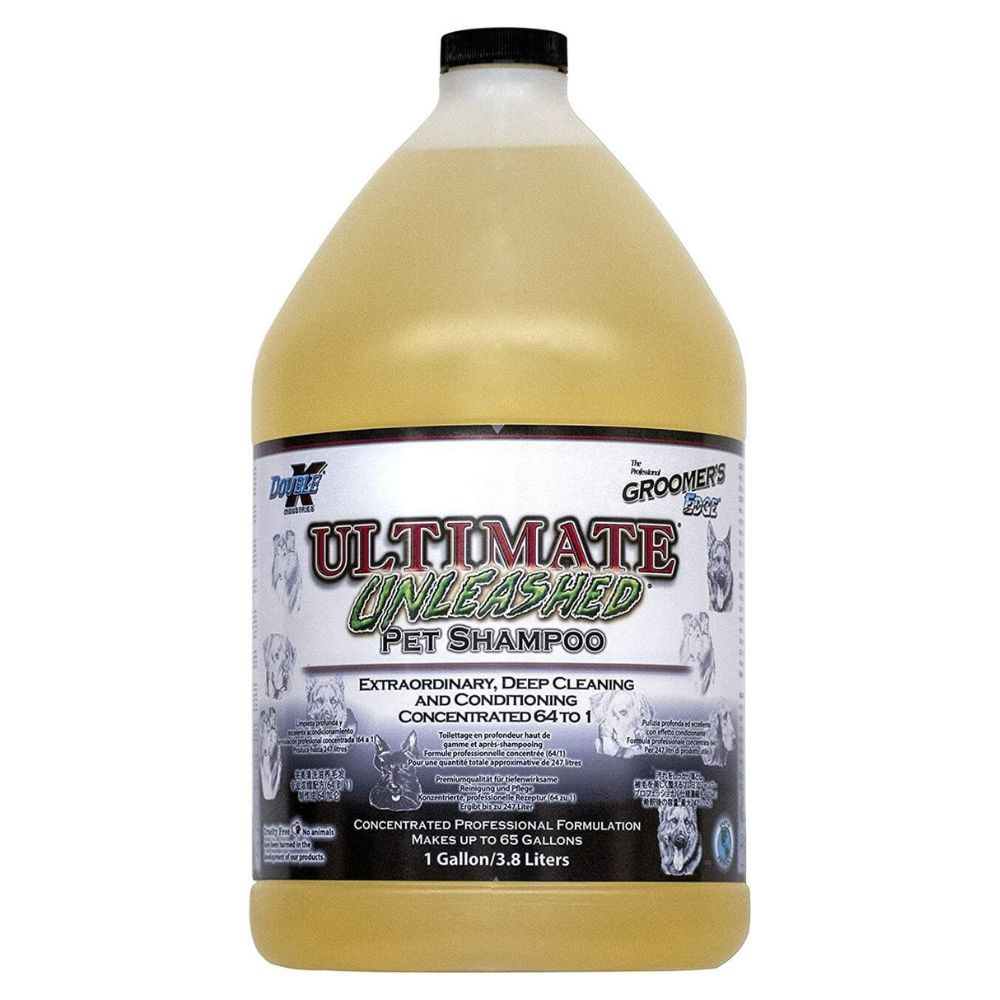 Dzięki unikalnej formule, Double K Ultimate Unleashed sprawia, że zwierzęta są dokładnie czyste, pachną świeżo, a ich sierść staje się miękka, łatwa do układania i lśniąca. Ekstremalna koncentracja tego szamponu (64 do 1) oznacza, że jest idealny do użytku w profesjonalnych salonach groomerskich.