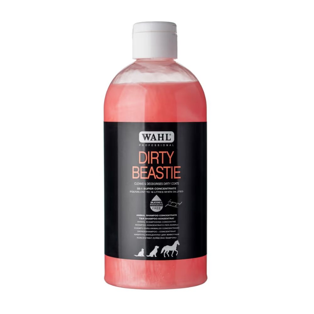 Wahl Dirty Beastie Shampoo spłukuje się bardzo łatwo, pozostawiając sierść czystą, odżywioną oraz pozbawioną nieprzyjemnych zapachów.