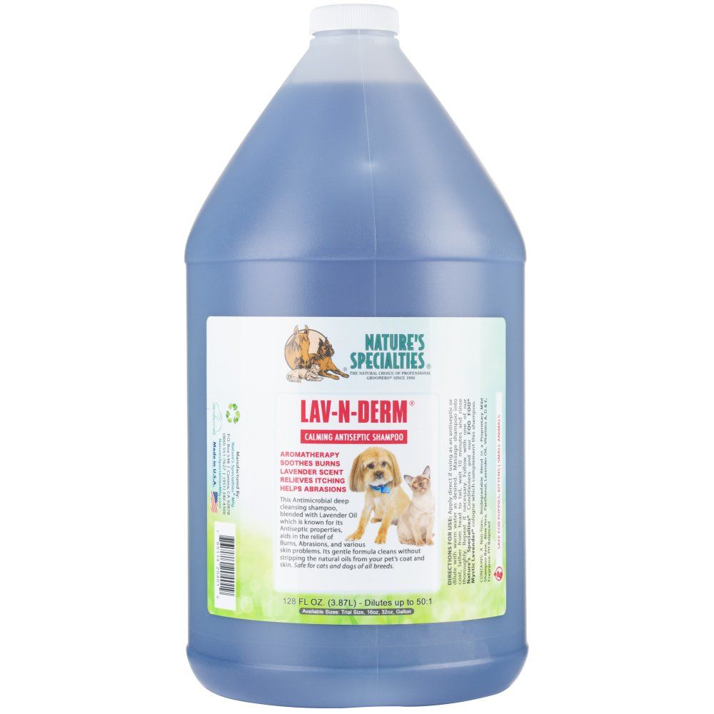 Szampon Lav-N-derm Nature's Specialties o działaniu przeciwbakteryjnym dogłębnie oczyszcza sierść.