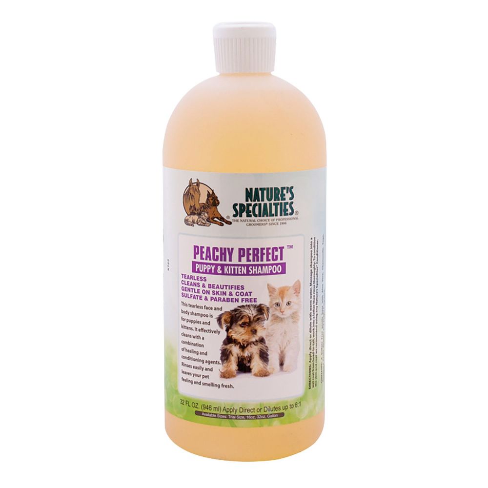 Szampon Peachy Perfect Natures dzięki specjalnej formule nie szczypie w oczy oraz nie zawiera mydła. Polecany dla szczeniaków.