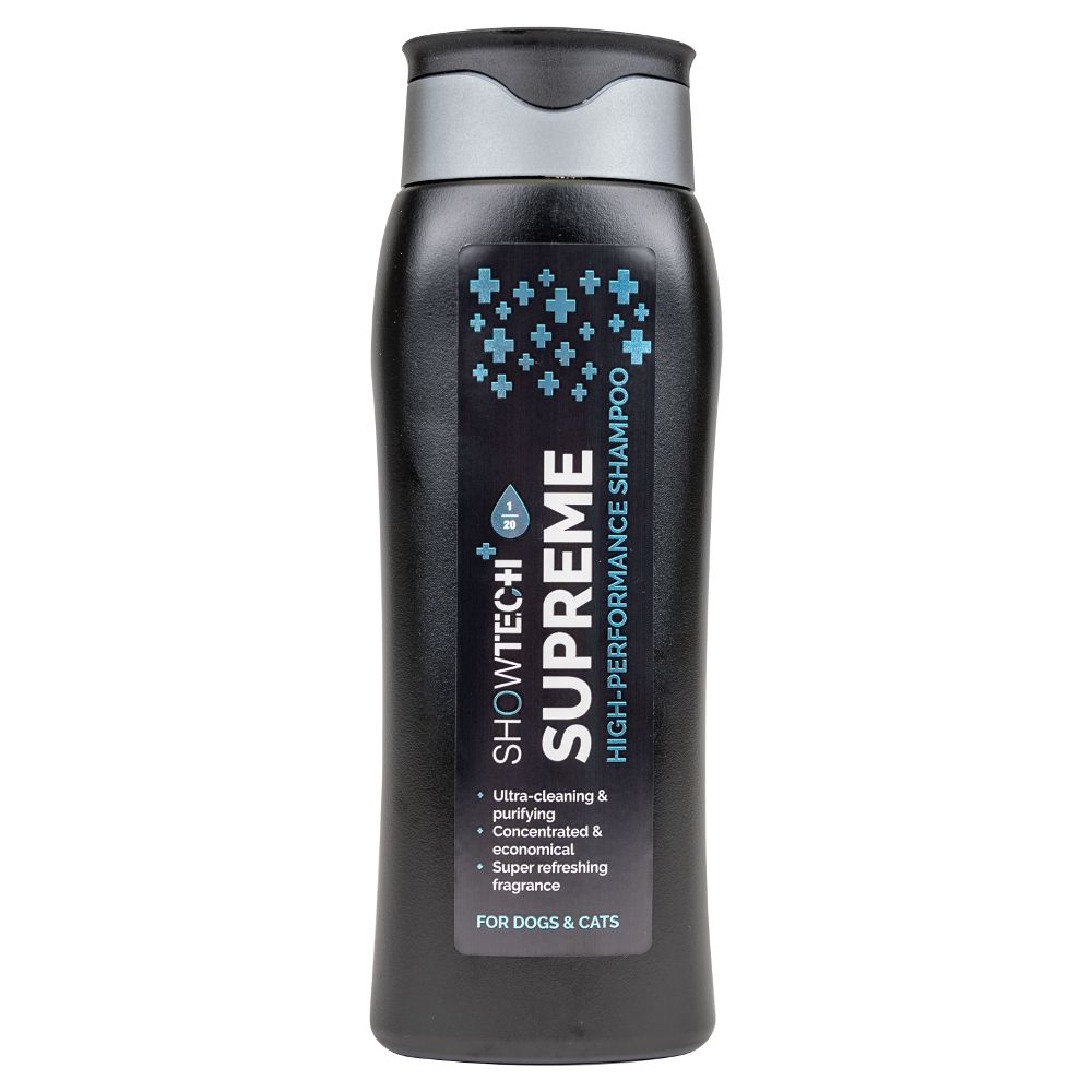 Show Tech+ Supreme Shampoo to oczyszczający, wielofunkcyjny i bardzo ekonomiczny szampon. Super skoncentrowany (1/20) szampon zapewnia dokładne oczyszczenie skóry bez wysuszania sierści. Usuwa wszelkie ślady sebum, oleju, brudu i tłuszczu ze skóry i sierści Twojego psa lub kota.