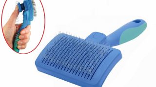 W bardzo łatwy sposób czyści się szczotkę, nie trzeba już wyciągać spomiędzy szpilek sierści wystarczy nacisnąć guzik a szpilki schowają się do szczotki pozostawiając na wierzchu sierść, którą należy zgarnąć i wyrzucić.