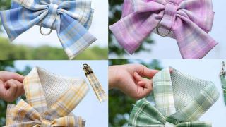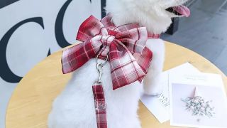 Zarówno smycz jak i szelki wykonane są z pięknego materiału w elegancką kratę. Ozdobna kokarda jest niezwykle efektowna i bardzo elegancka.