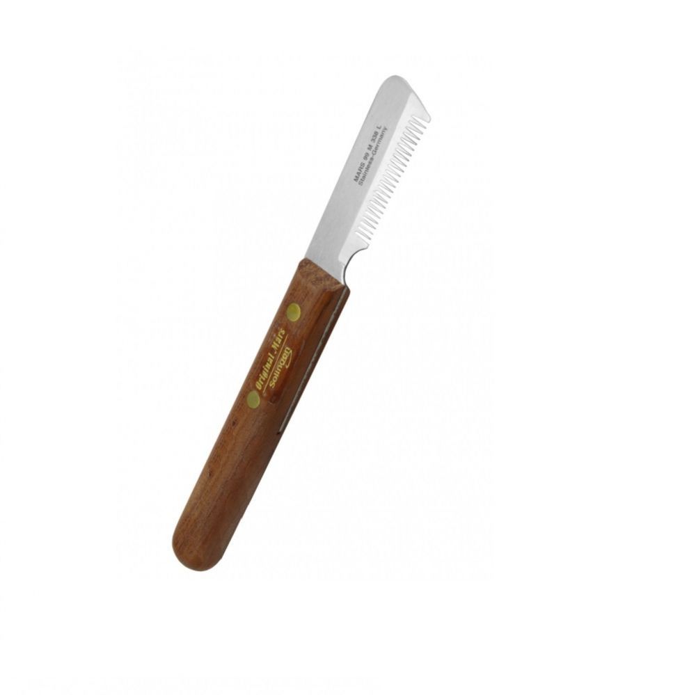 Trymer polecany do szorstkiej i niezbyt długiej sierści średniej grubości. Usuwa martwą sierść okrywową.