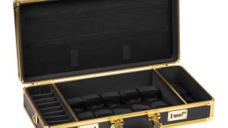 Walizka na sprzęt groomerski i fryzjerski w kolorze złoto-czarnym.