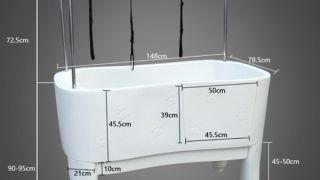 Głębokość wanny wynosi 50 cm, dzięki czemu wanna idealnie nadaje się dla dużych ras psów.
