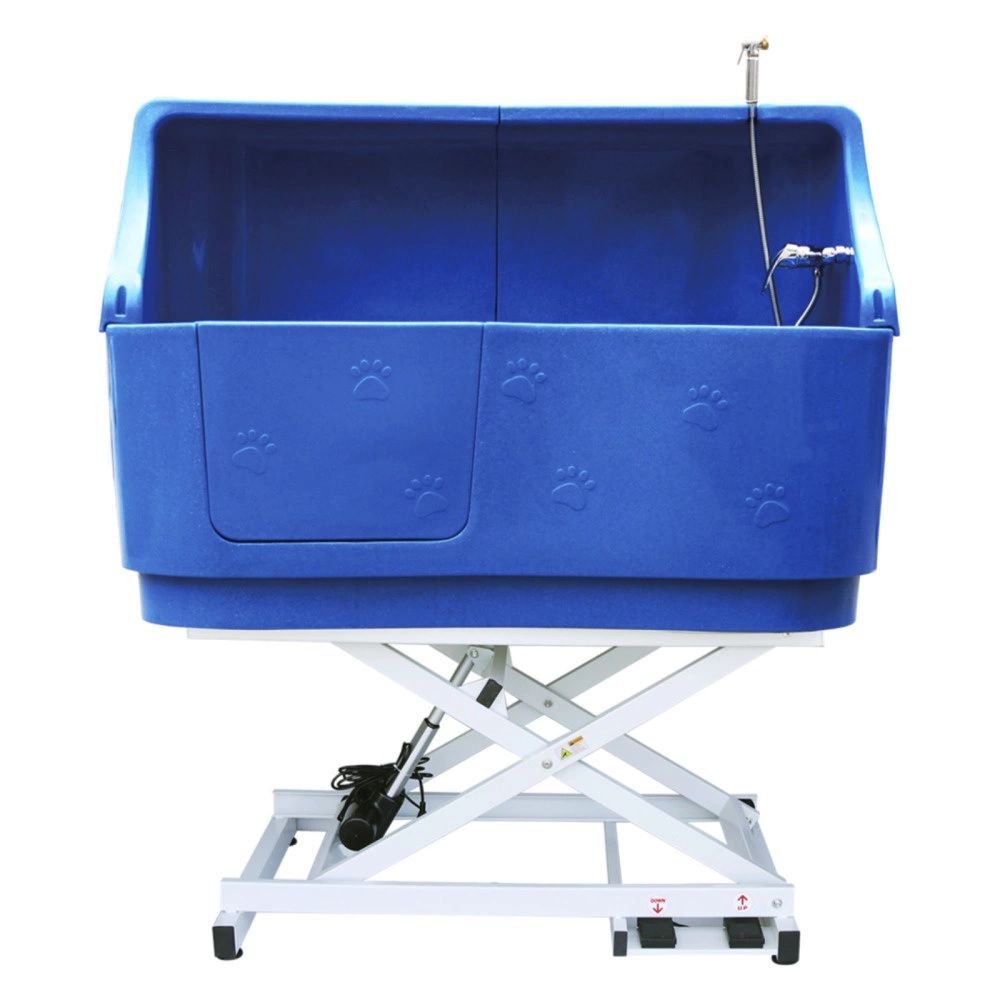 Elektryczna regulacja wysokości: pedał nożny pozwala na płynne ustawienie wysokości (86–123 cm), co ułatwia kąpiel średnich, dużych i starszych psów.