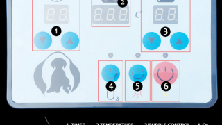 - Podłącz wannę i włącz zasilanie. Ustaw czas, temperaturę i poziom pęcherzyków na panelu sterowania.