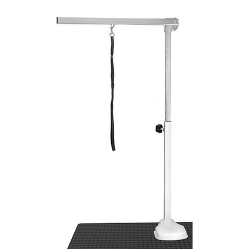 Wysięgnik posiada w zestawie łapkę do mocowania do stołu (max grubość stołu 7 cm) oraz smyczkę groomerską.
