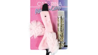 Cat&Rina Pluszowy Flaming to pluszowa zabawka dla kotów w kształcie flaminga, wyposażona w sznurkowe nóżki i kieszonkę na kocimiętkę.