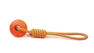 Piłka z liną to bardzo przydatna zabawka do edukacji i szkolenia psów; wykonana z miękkiego, lekkiego i elastycznego materiału jest bardzo trwała i można ją z łatwością rzucać.