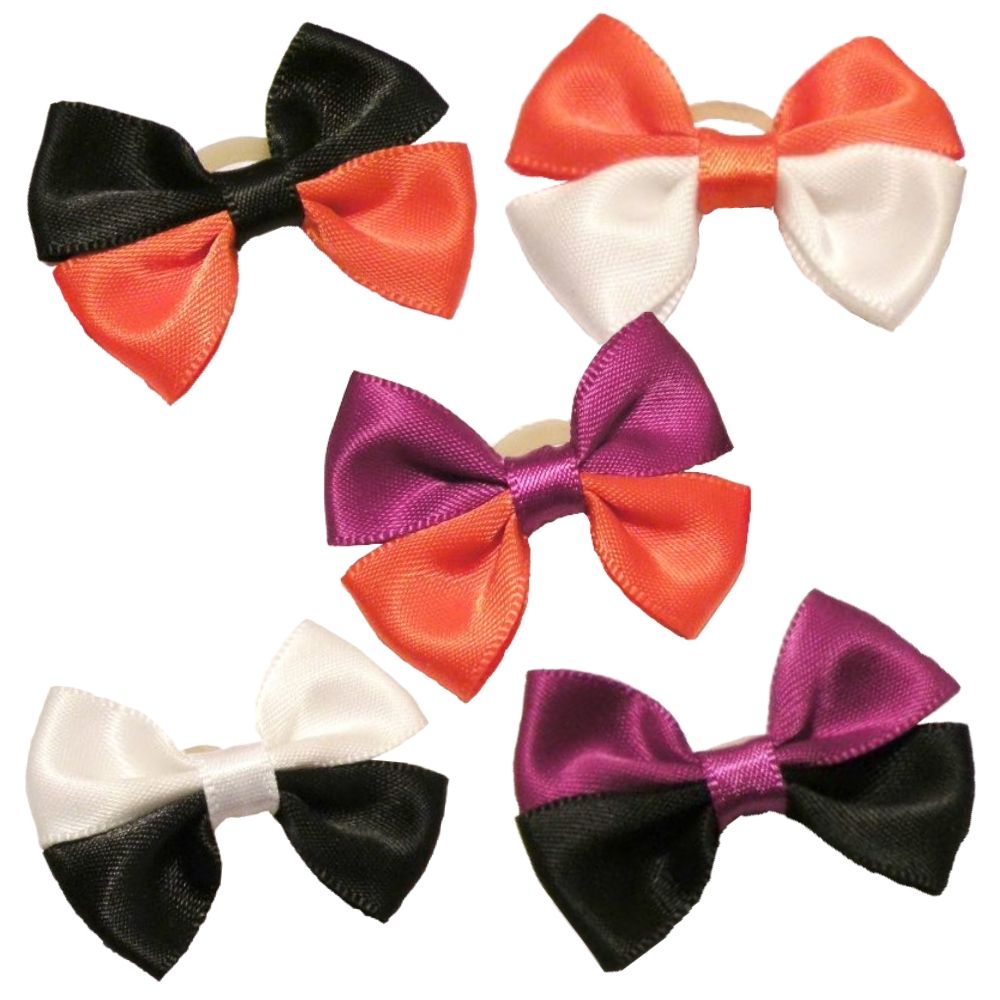 Zestaw pięciu dwukolorowych kokardek na silikonowej gumce.