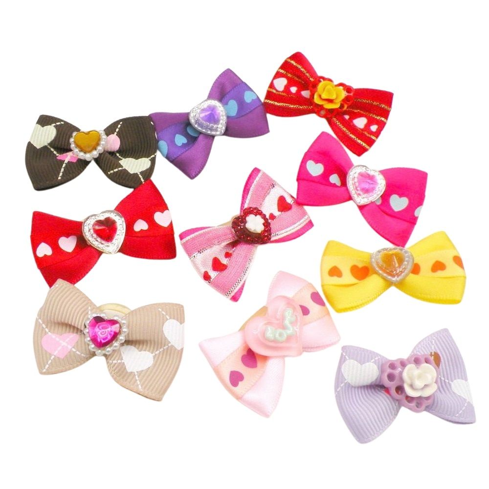 Zestaw dziesięciu kokardek to idealne rozwiązanie dla każdego właściciela psa, który chce, aby jego pupil wyglądał wyjątkowo każdego dnia. Kolorowe wzory i urocze serduszka sprawiają, że każda fryzura zyska na elegancji i uroku.