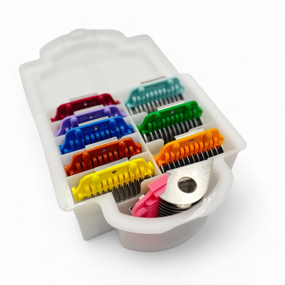 Nakładki ze stali nierdzewnej pozwalają uzyskać gładkie wykończenie strzyżenia, a ich przesuwanie się po sierści jest znacznie bardziej płynne niż w przypadku nakładek plastikowych.
