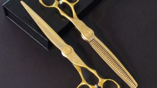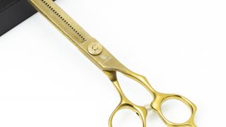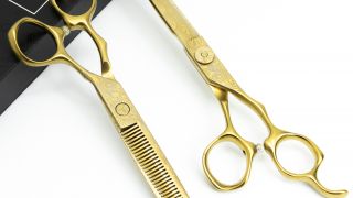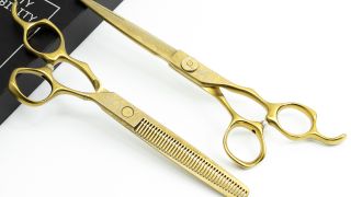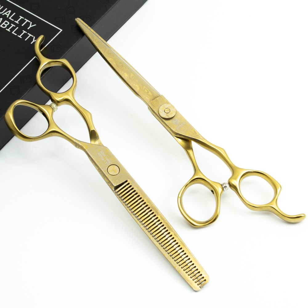 Zestaw nożyczek proste i degażowe 6,5" złote ze zdobieniem
