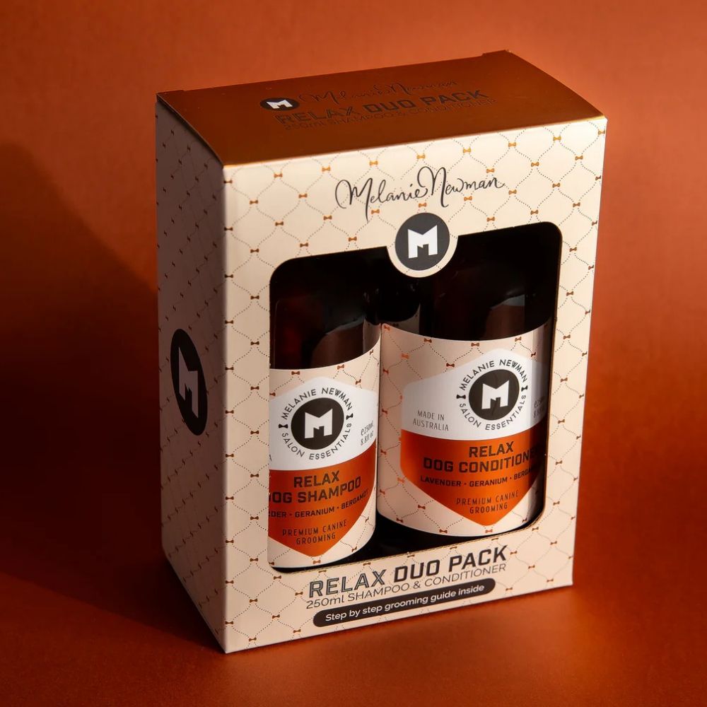 Seria Relax przywróci wilgoć suchiej skórze i sierści. Zawiera witaminy A, C i E. Wszystkie trzy z tych witamin promują zdrowy wzrost komórek i lśniącą sierść. Kolekcja Melanie Newman Salon Essentials Relax jest przeznaczona dla psów o kręconym i krótko-średnim typie sierści. Dla ras takich jak bichon frise, pudel, bolończyk, maltipoo i pooshon. Posiada właściwości zwalczające niepożądane zapachy oraz uspokajające, dzięki mieszance naturalnych olejków eterycznych i soku z liści aloesu. Jest również doskonały dla szczeniąt i nerwowych zwierząt.