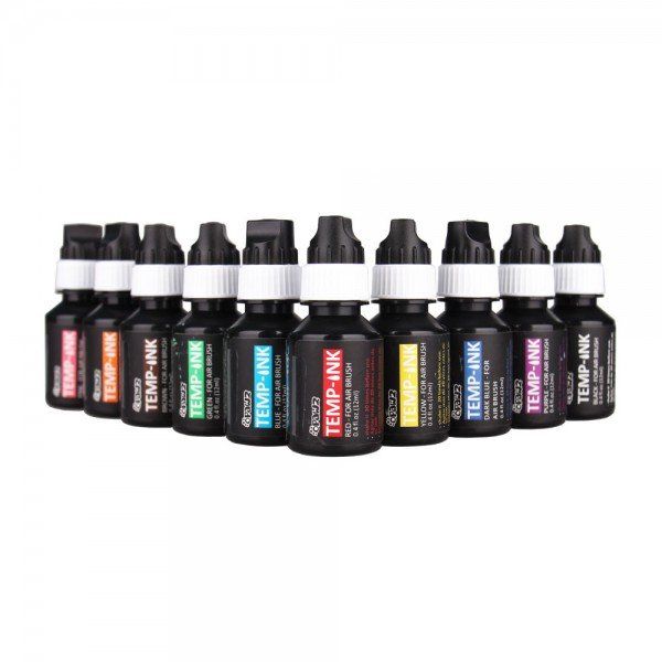 Zestaw tuszy do natryskowego malowania zawiera 10 kolorów: