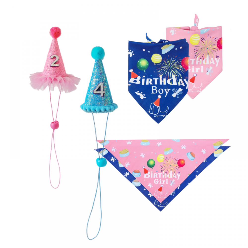 Świętuj urodziny swojego pupila z naszym wyjątkowym zestawem urodzinowym Birthday Boy! Komplet zawiera niebieską lub różową urodzinową czapeczkę oraz bandankę, idealne do sesji zdjęciowej z okazji urodzin. Do zestawu dołączone są cyfry, które można przykleić do czapeczki, pozwalając na personalizację i dodanie unikalnego akcentu.