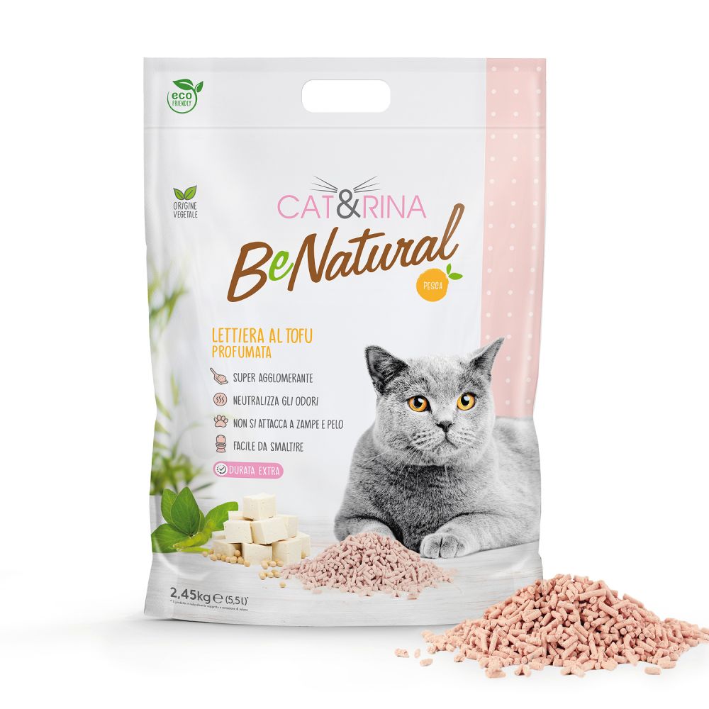 BeNatural Tofu to innowacyjny żwirek dla kota w całości pochodzenia roślinnego: włókna, z których jest wykonany, pochodzą z odpadów z produkcji żywności, w duchu recyklingu i redukcji odpadów.